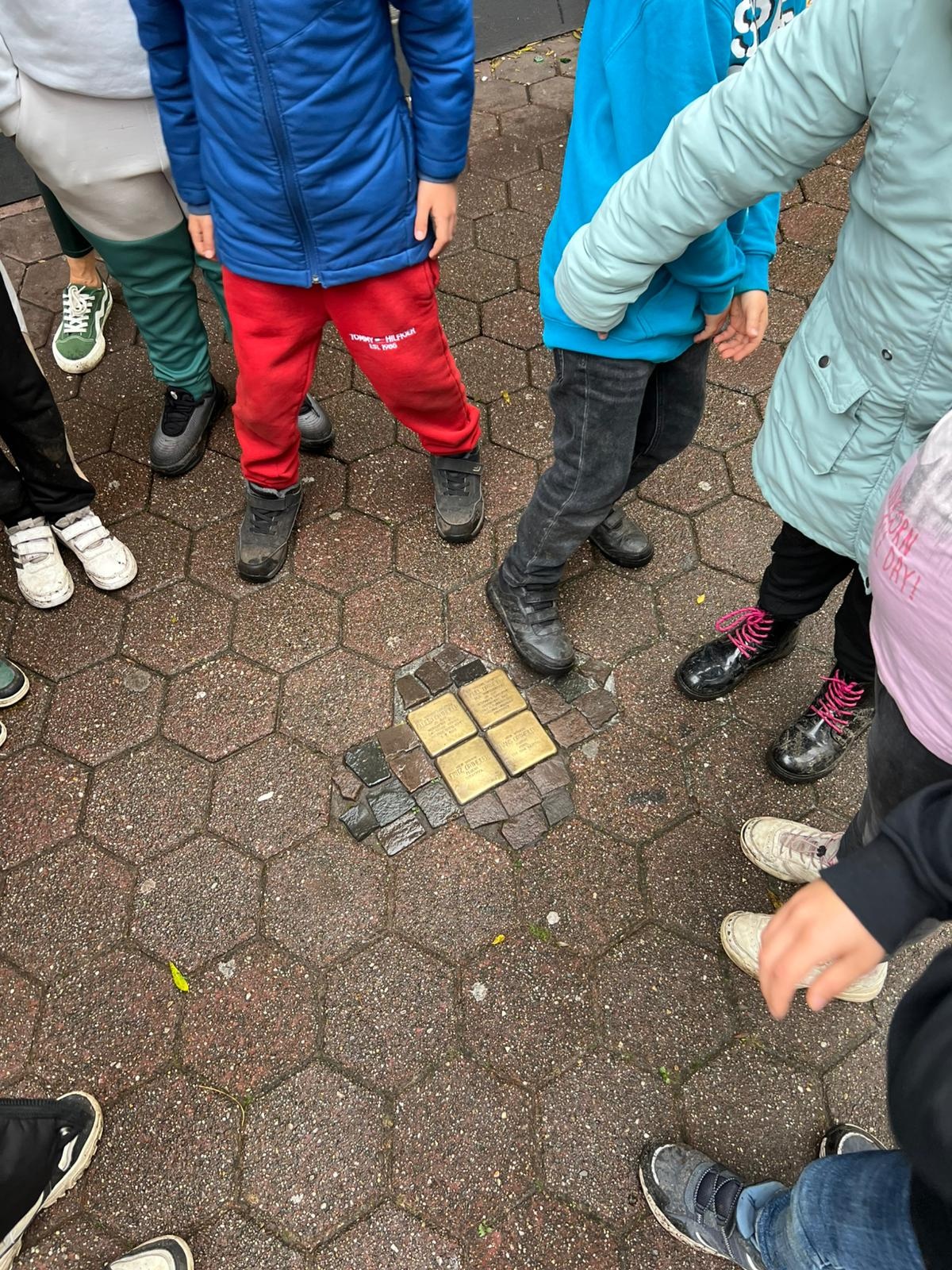 Weil am Donnerstag in der Schule Else-Hirsch-Tag ist, hat sich die Waschbärenklasse mit Frau Else Hirsch, nach der unsere Schule benannt wurde, befasst. Die Schüler:innen lernten wer Else Hirsch war und was sie zu einer besonderen Frau machte. Da es in der Stadt für Frau Else Hirsch einen Stolperstein gibt und die Waschbären sich fragten, was das genau ist und wie einer in echt aussieht, haben wir welche gesucht. In der kleinen Einkaufsstraße neben der Schule in Gerthe haben wir die frisch geputzen Steine entdeckt und genauer angeschaut.