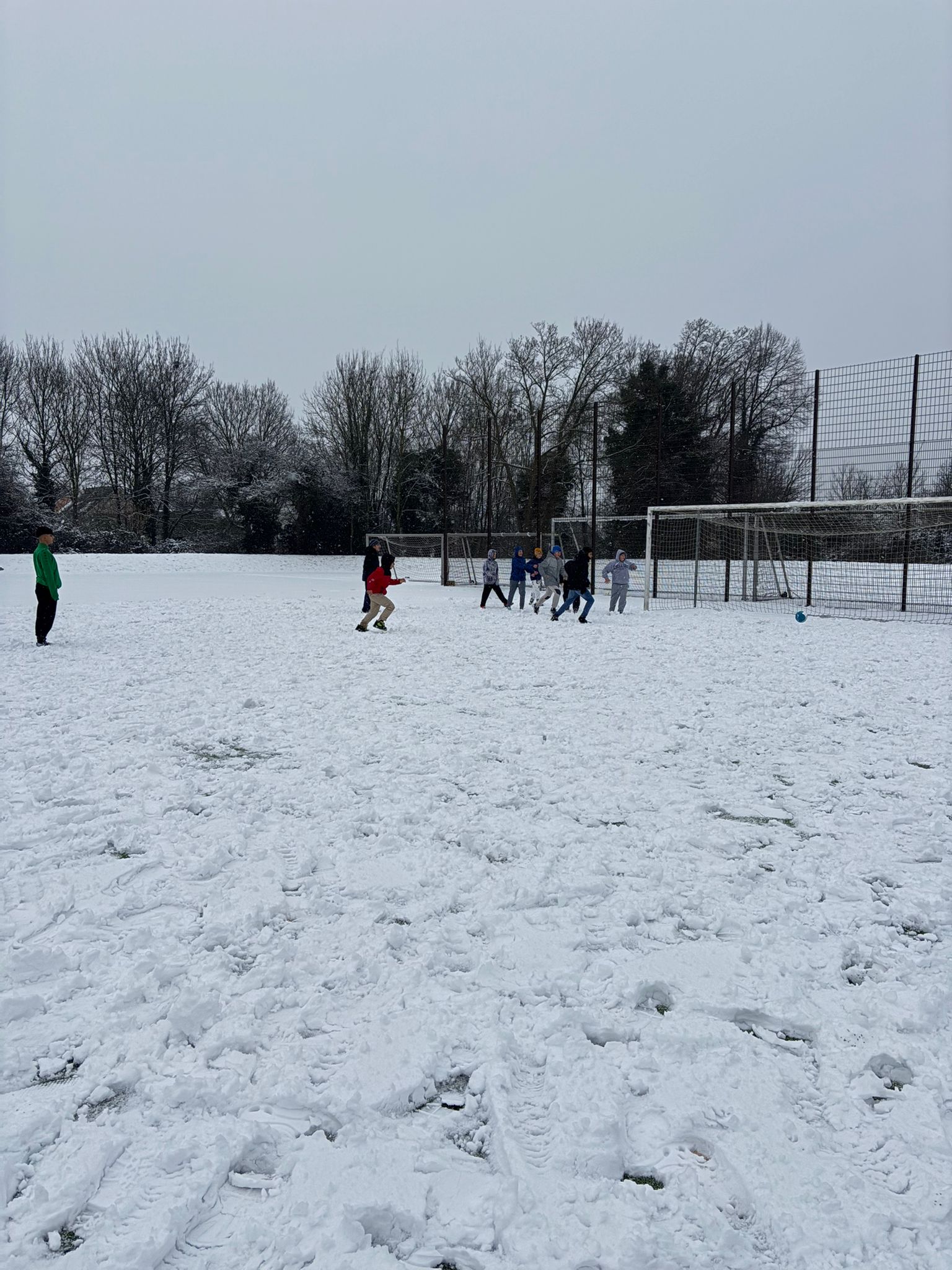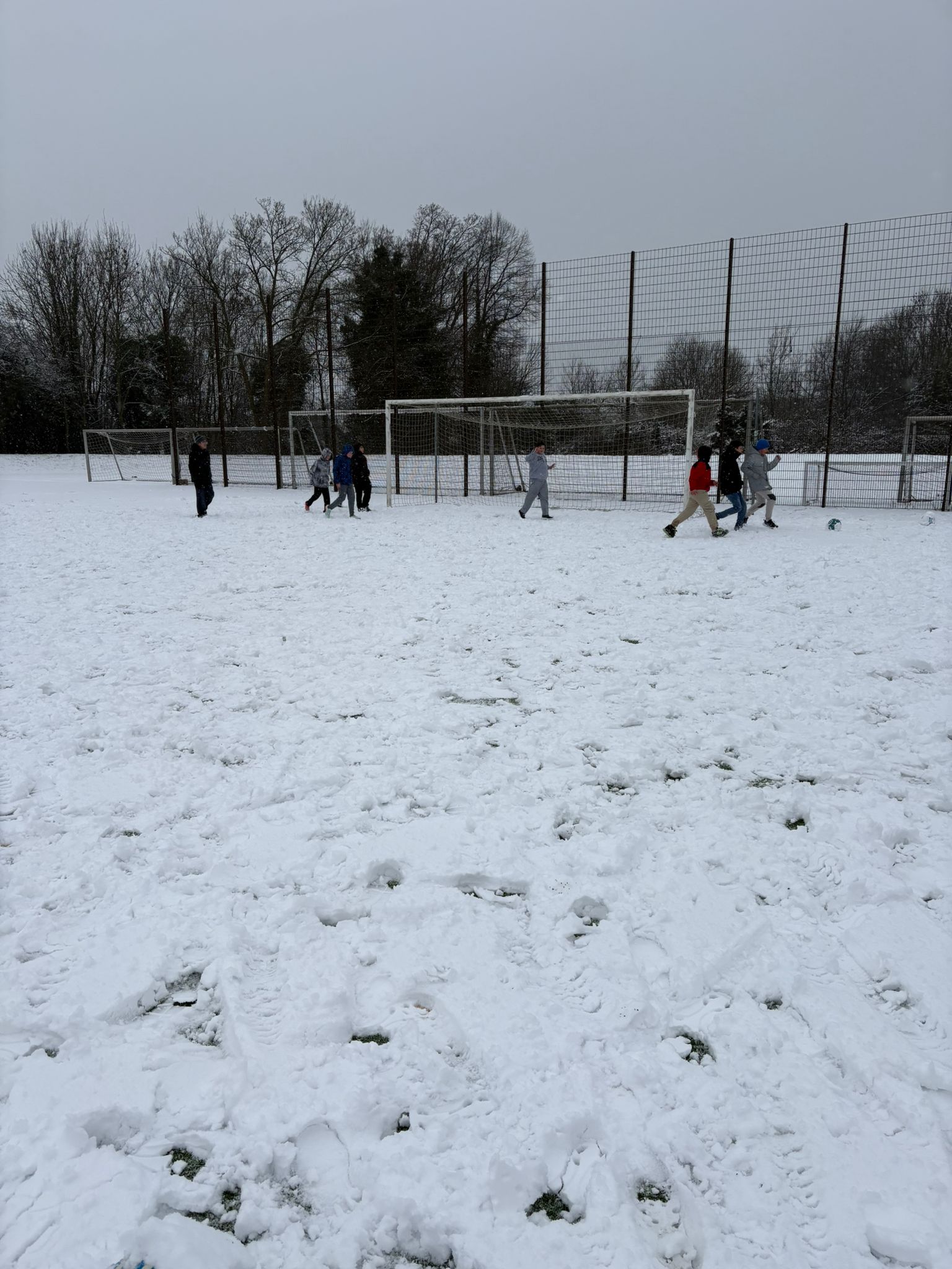 Die Fußball-AG der Mittelstufe konnte auch der Schnee nicht davon abhalten, auf dem Sportplatz das ein oder andere Spiel zu bestreiten.
