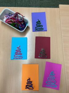 Mit viel Spaß und Geduld häkeln wir bunte Schntüre und basteln daraus etwas für den Weihnachtsbasar.
