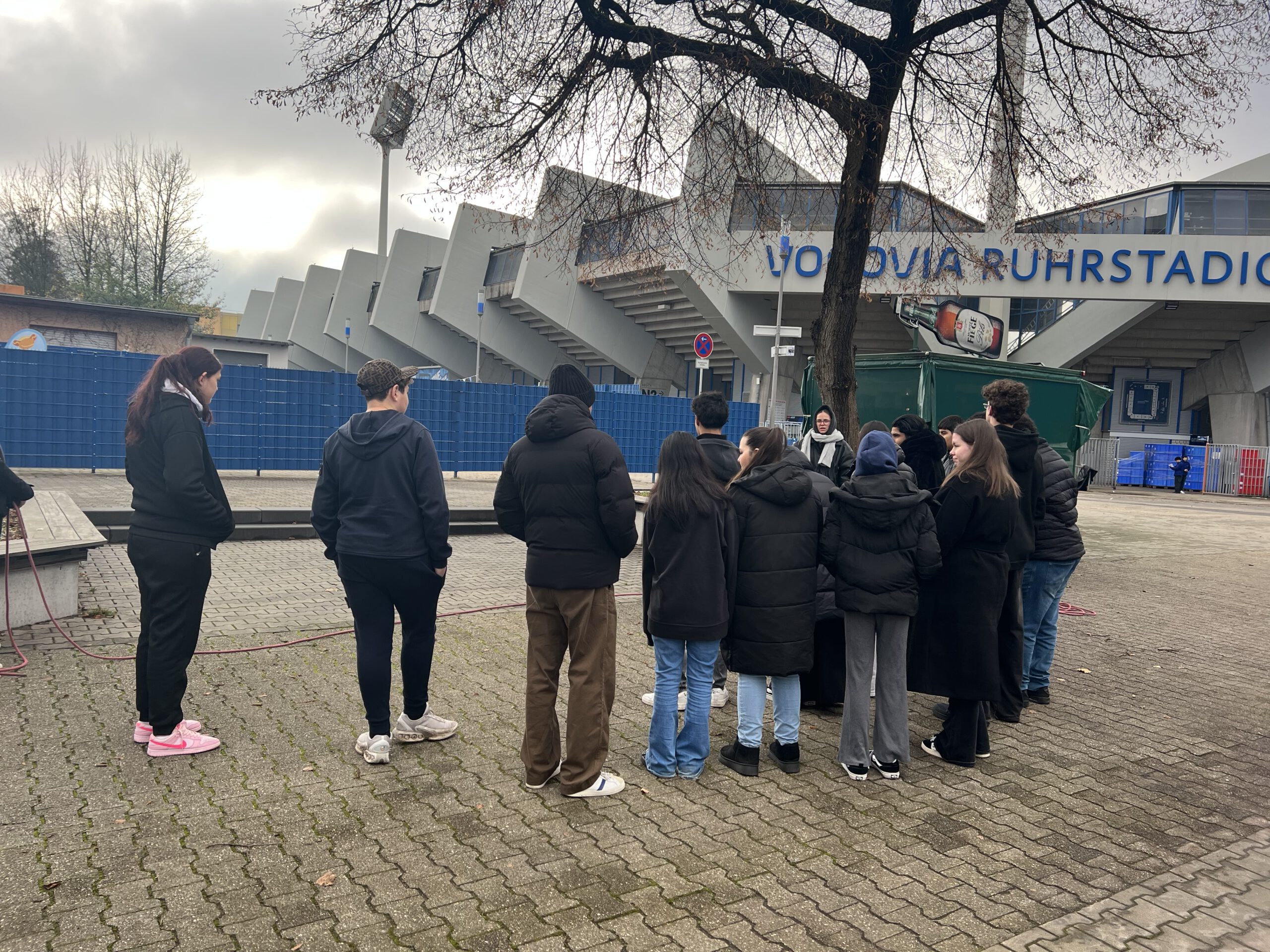 Die Klasse 9a hat gemeinsam mit ihrem Klassenlehrer an dem dreitägigen Seminar „Soccer meets learning“ teilgenommen, das vom Fan-Projekt des VfL Bochum ausgerichtet wurde. Im Zentrum standen Teambuilding und soziales Verhalten. Gemeinsam mir ihrem Klassenlehrer setzten sich die Schülerinnen und Schüler damit auseinander, welche Verhaltensweisen ein gutes Team unterstützen und welche eher hinderlich sind. In verschiedenen Workshops konnten sie diese Erkenntnisse durch praktische Übungen, Spiele und Gruppenaufgaben direkt ausprobieren und reflektieren. Alle Beteiligten hatten viel Spaß und nahmen wertvolle Eindrücke sowie neue Denkanstöße mit zurück in die Schule. Ein rundum gelungenes Projekt, das die Klassengemeinschaft weiter gestärkt hat.